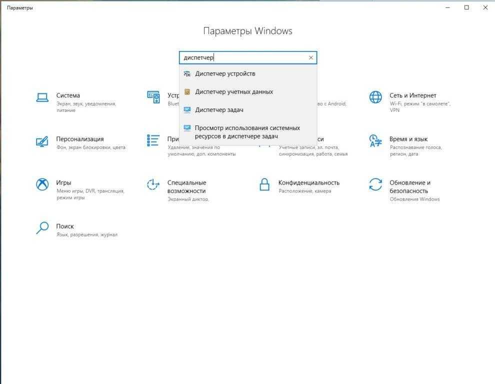 В строке поиска ввести запрос «Диспетчер». В первой строке обычно выходит то, что нужно.