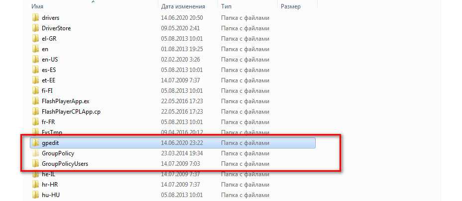 - Для 64-битной версии Windows также необходимо вручную скопировать папки GroupPolicy, GroupPolicyUsers и файл «gpedit.msc» из папки Windows\SysWOW64 в Windows\System32.