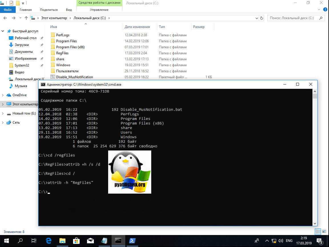 Установка или снятие атрибута скрытый через командную строку пригодиться в нескольких случаях: