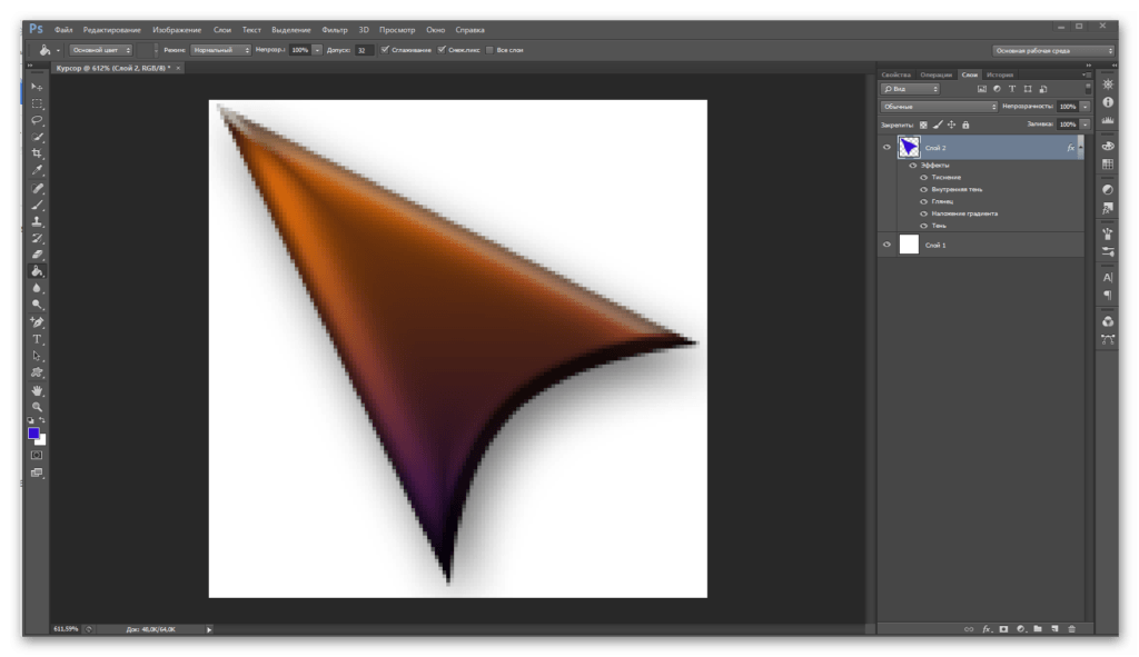 - Переходим на прозрачный слой и создаём рисунок для будущего указателя, используя графические инструменты. Проявите фантазию.