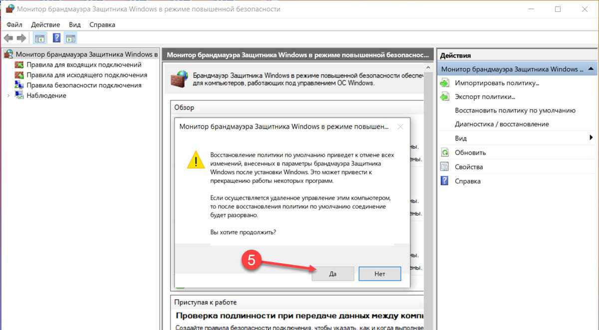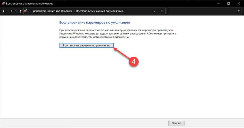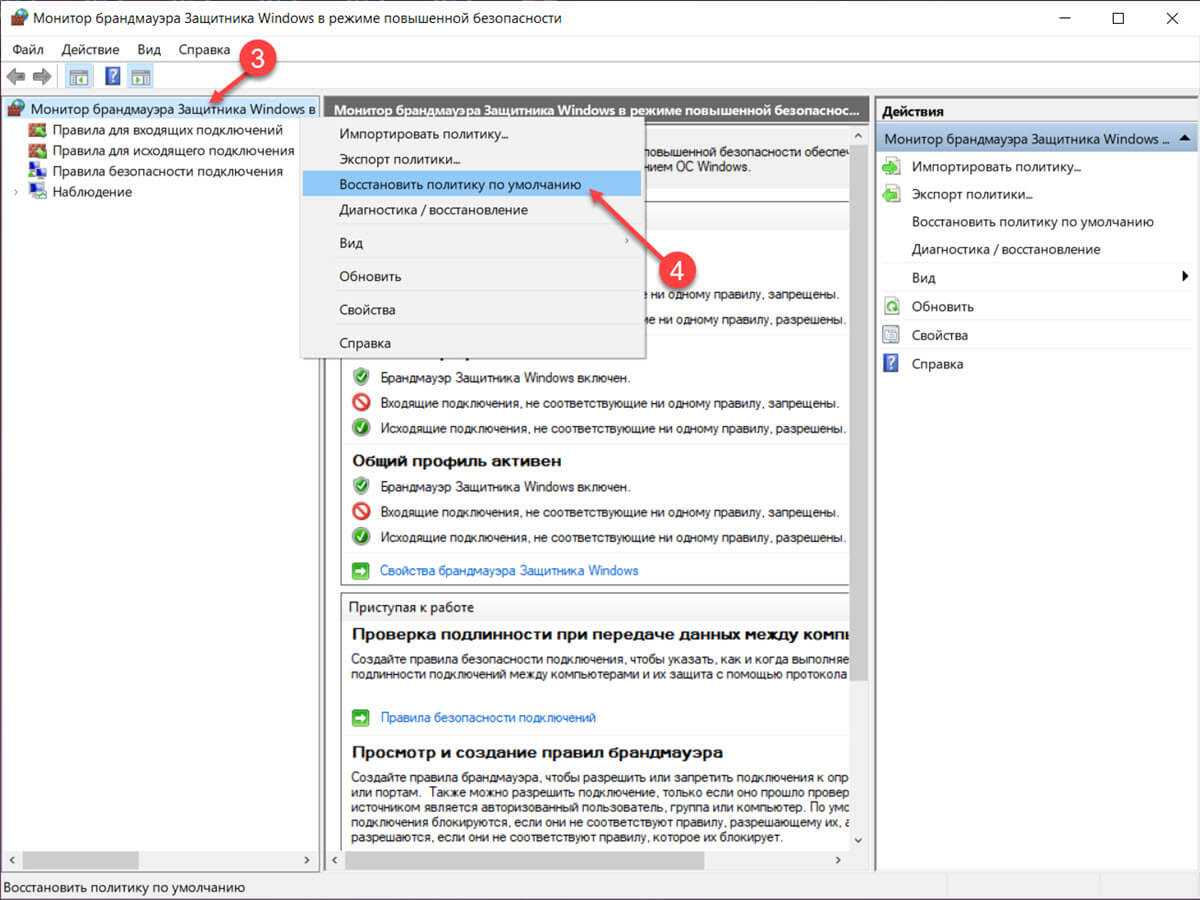 Чтобы вернуть настройки брандмауэра по умолчанию, проделайте следующие шаги: