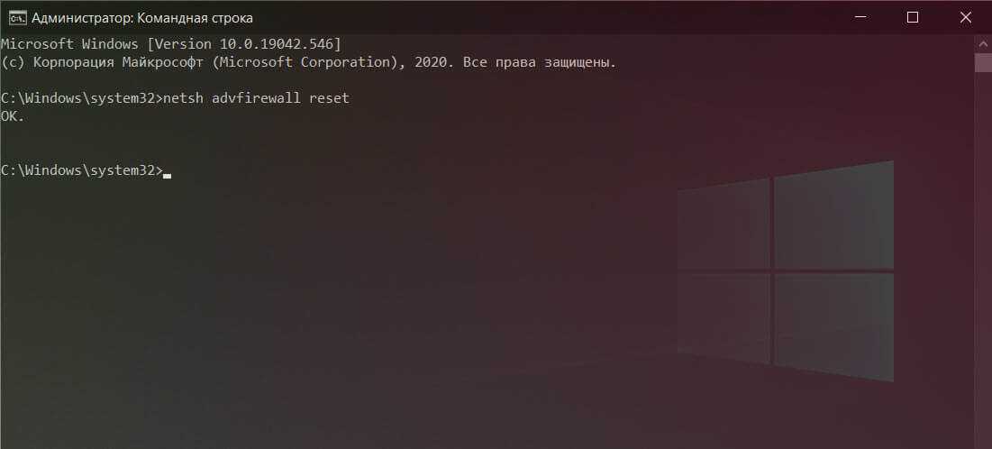 После выполнения команда удалит текущие настройки брандмауэра Windows 10, а на устройстве будут восстановлены исходные настройки.