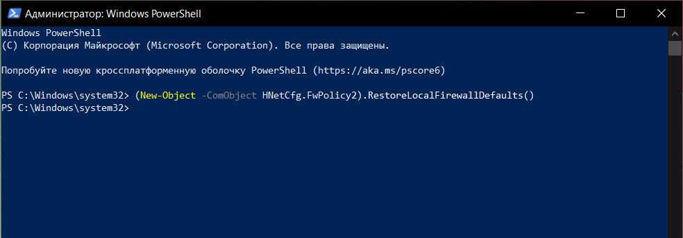 3. Сброс настроек брандмауэра с помощью PowerShell