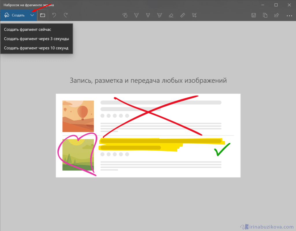 Выбрав нужный элемент, делаем скриншот и автоматически возвращаемся в редактор, где можем внести изменения, например, нарисовать или написать текст.
