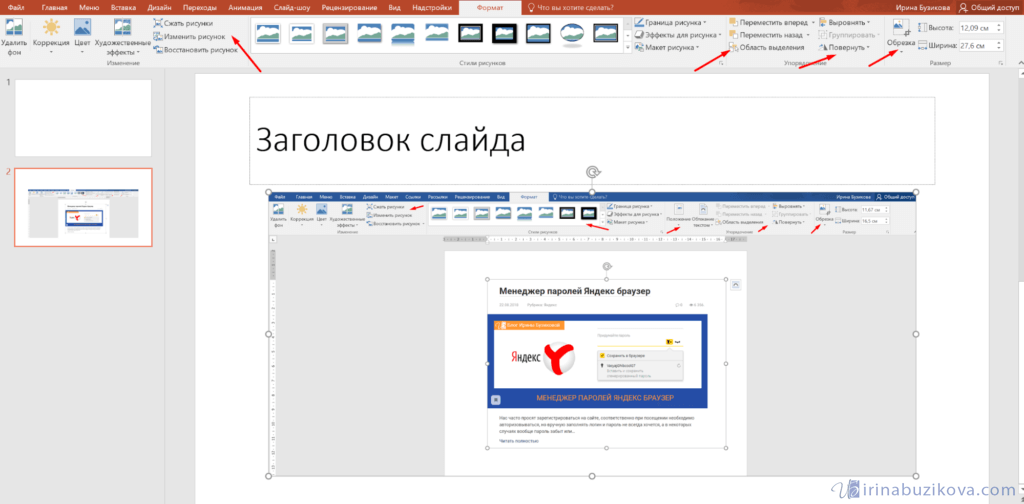 Далее уже встроенными функциями презентации или документа можно доработать скриншот.