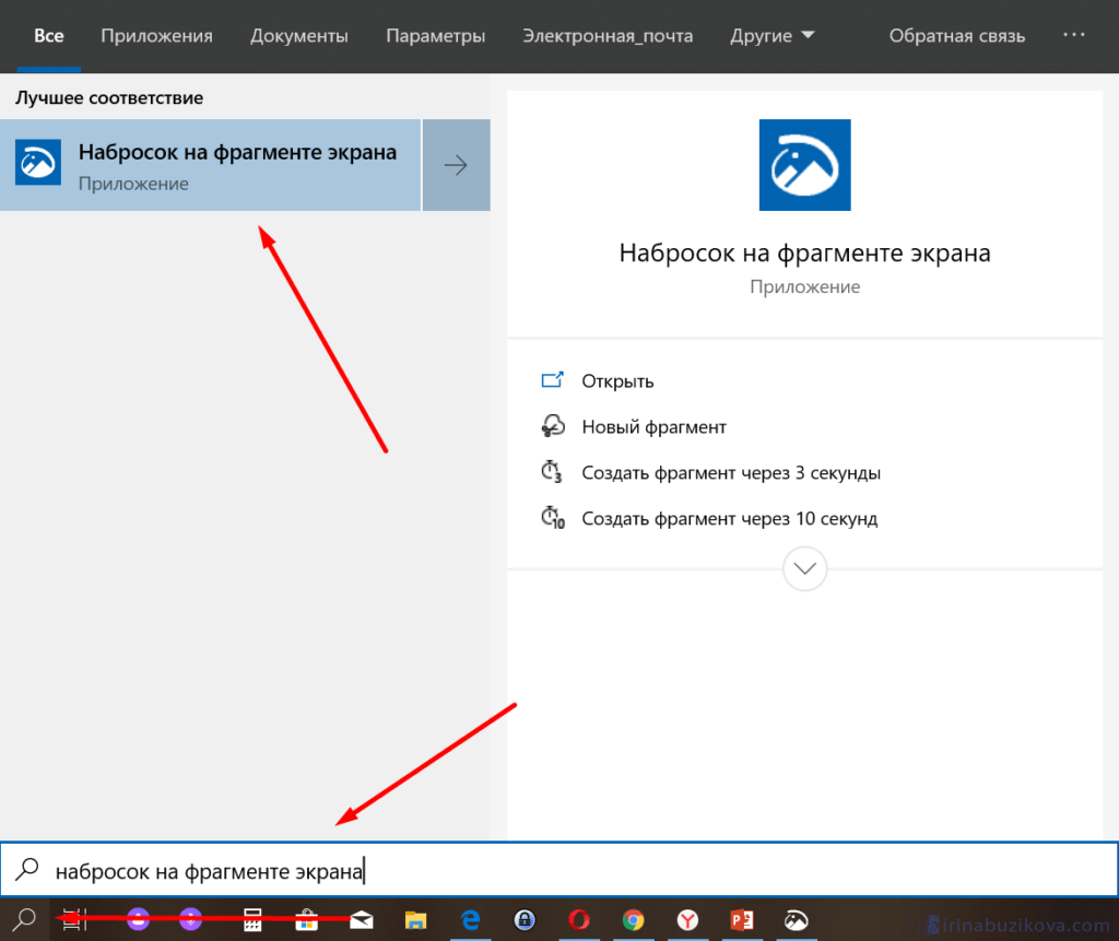 - Найдите в меню Пуск «Набросок на фрагменте экрана».