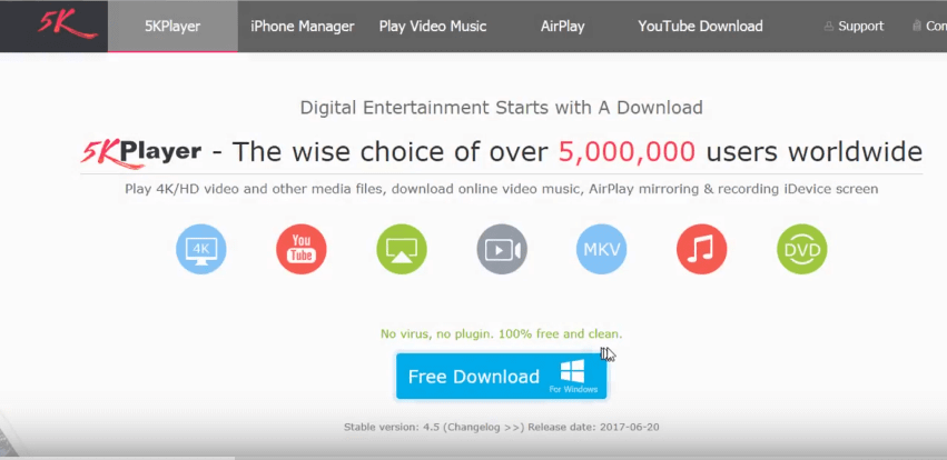 5K Player может быть самым новым игроком в этом блоке, но уже считается одним из лучших для воспроизведения видео HEVC. Он совместим с форматом UHD, что делает его также готовым к HEVC. Это также просто и эффективно, с возможностью очень быстрого воспроизведения видео HVEC.