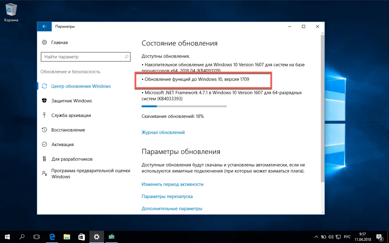 Для проверки последних обновлений перейдите в меню Параметры > Обновление и безопасность и нажмите Проверка наличия обновлений . Вы должны увидеть, что доступно Обновление функций до Windows 10, версия 1709.