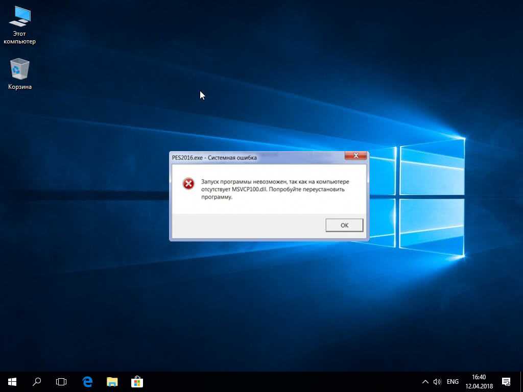 Win10 64bit на новом ноутбуке. Когда я нажимаю на значок Office, чтобы запустить Office 365, или пытаюсь запустить одну из игр, появляется несколько сообщений об ошибках, говорящих о том, что MSVCR100.dll и MSVCP100.dll отсутствуют.