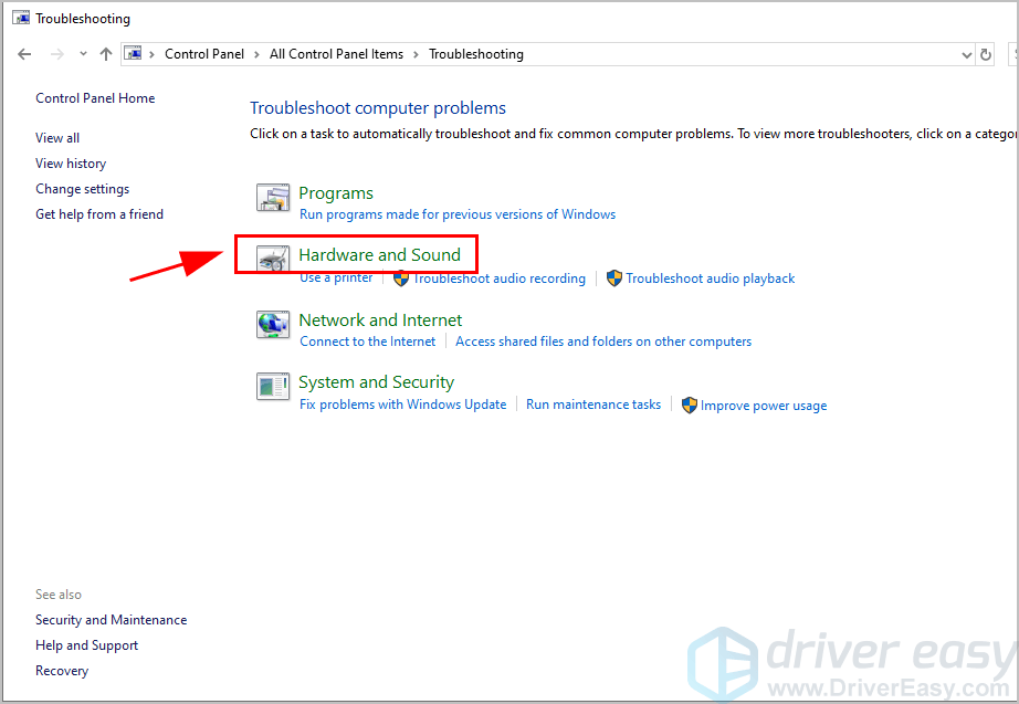 4) Нажмите Воспроизведение аудио найти и исправить проблемы с воспроизведением звука.