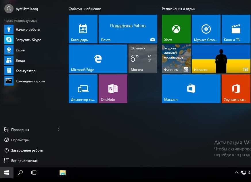 Один из вариантов оформления меню Пуск в Windows 10