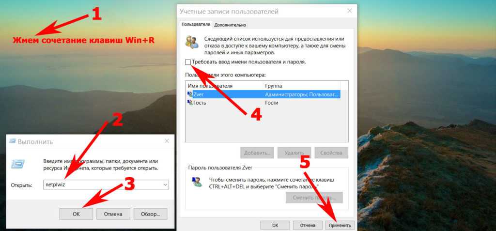 В случае когда пользователем применяется локальная учетная запись в ПК, можно убрать запрос этих данных для конкретного пользователя. Для этого требуется исполнить несколько последовательных действий: