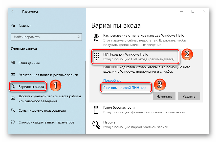 Отключение Windows Hello