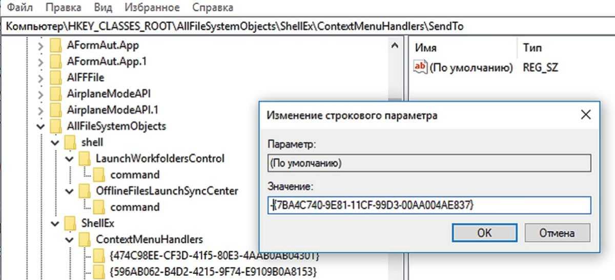 Совет. Чтобы восстановить запись «Передать на устройство», в контекстном меню Windows 10, удалите созданный параметр — .