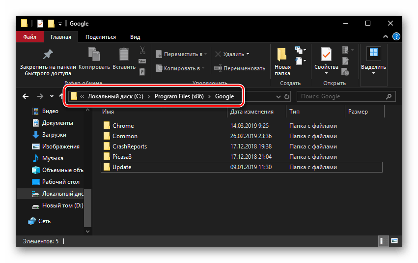 - C:\Program Files (x86)\Google\ — для 64-битных ОС;
