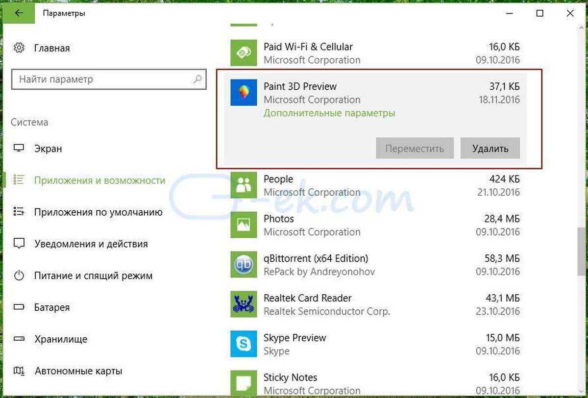- Выберите Paint 3D в списке и нажмите кнопку Удалить