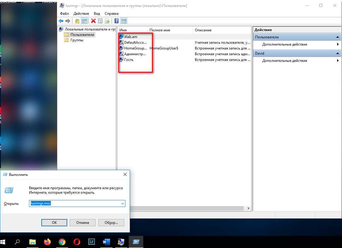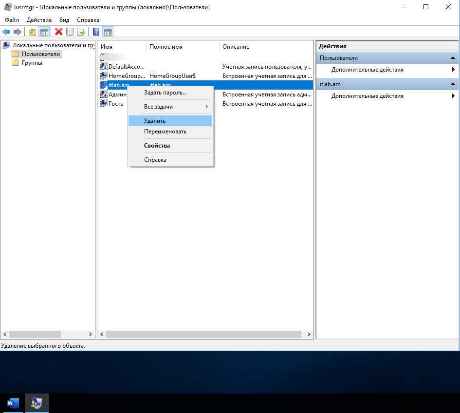 Удаление учетной записи пользователя из редактора “Локальные пользователи и группы”