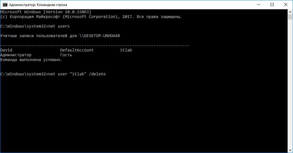 Удалить учетную запись пользователя с помощью Командной Строки (cmd)