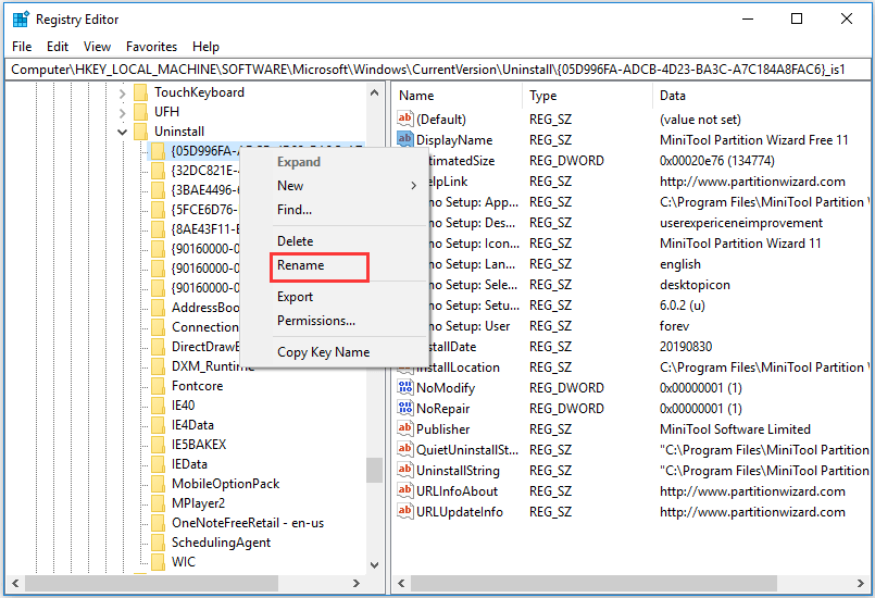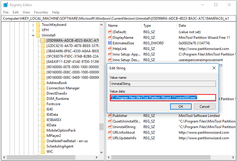 Шаг 3: Затем вы увидите там много ключей, которые представляют установленные на вашем компьютере программы. На правой панели найдите строку с именем UninstallsString и дважды щелкните по нему.
