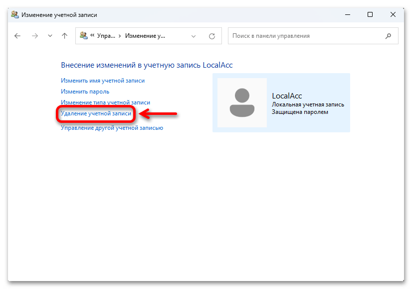 Выберите «Удалить учетную запись пользователя».