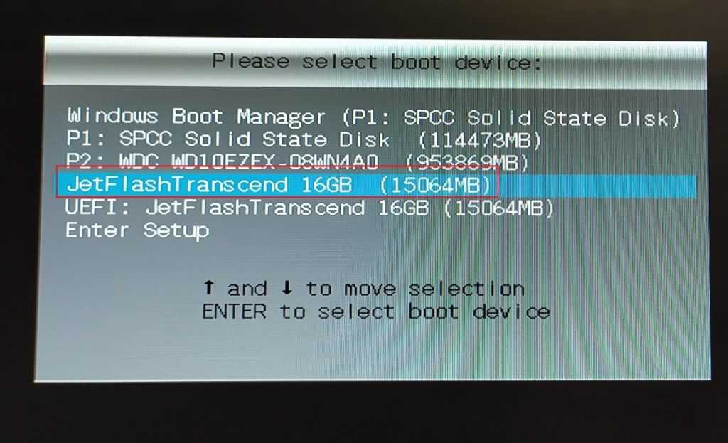 Есть и другой, более простой, но не всегда рабочий вариант. При запуске компьютера/ноутбука нам нужно зайти в меню быстрой загрузки (Boot Menu). Как правило, это клавиша “F8”. В появившемся окне выбираем из списка загрузочную флешку. Пример на картинке: