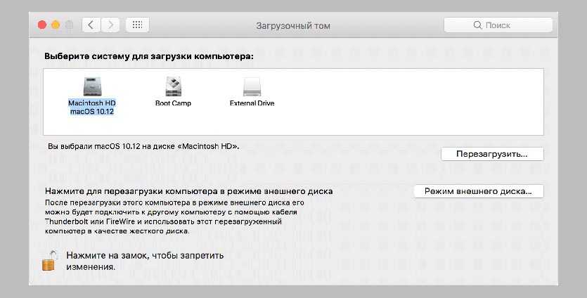 Для обратного перехода следует перейти в Системные настройки – Загрузочный том, ввести пароль разблокировки настроек и выбрать раздел с Windows для загрузки.