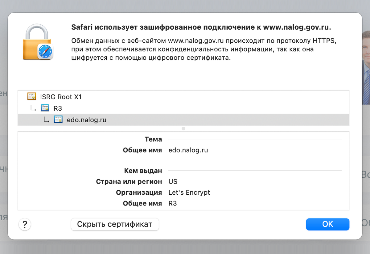 Но пока на зарубежные сертификаты перешли не все государственные сайты. Например, сайт Федеральной налоговой службы работает с любого браузера. Дело в том, что организация получила сертификат от некоммерческого центра Let’s Encrypt, который действует с 15 апреля по 14 июля 2023 года.