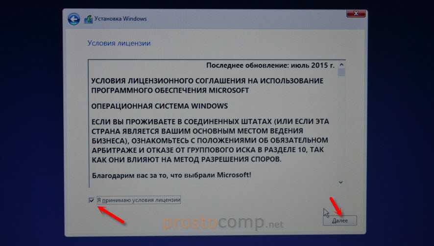 Теперь нам потребуется ввести ключ продукта. Вводим его и нажимаем «Далее». Теперь вашему вниманию предлагается лицензионное соглашение, с которым рекомендуется ознакомиться. После ознакомления установите галочку в строке «Я принимаю условия лицензии» и нажмите «Далее».