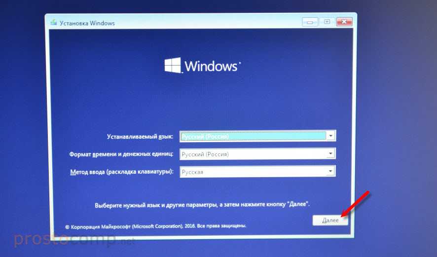 После того как выскочило окошко с логотипом Windows, ждём пару минут до появления пунктов с выбором языка. Выбираем нужный из списка, после чего идем дальше.
