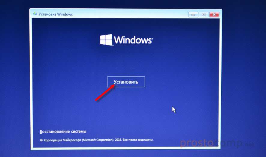 Восстановление – это функция, позволяющая восстановить уже имеющуюся ОС. Выбирать эту функцию нужно в том случае, если у вас есть проблемы с загрузкой. Нас же интересует второй вариант. В центре экрана будет большая кнопка «Установить». Нажимаем ее и переходим на следующий этап.
