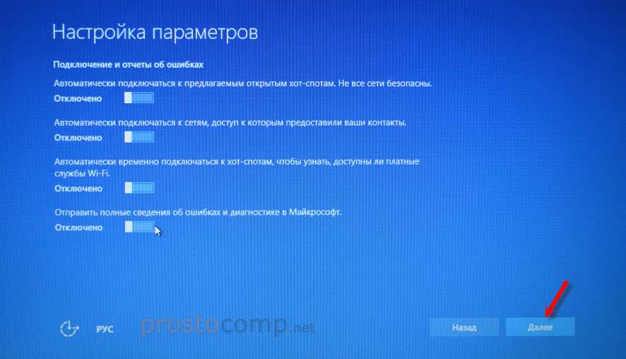 После выгрузки всех компонентов ОС на жесткий диск и нескольких перезагрузок компьютера следует этап ввода пользовательских параметров. Пошаговое руководство: