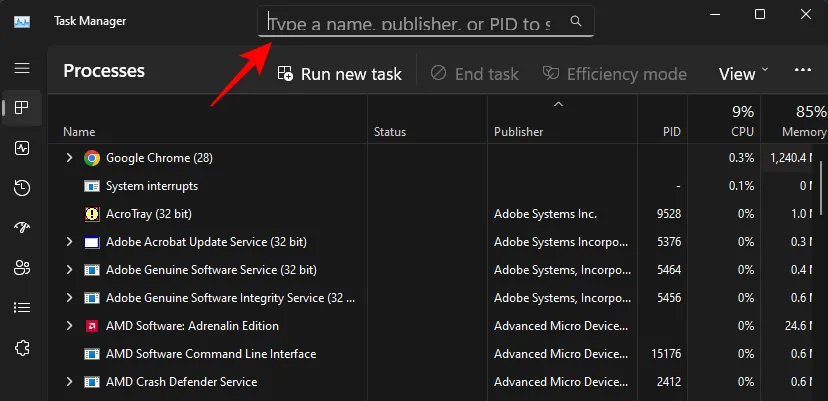 Затем нажмите на поле поиска вверху.