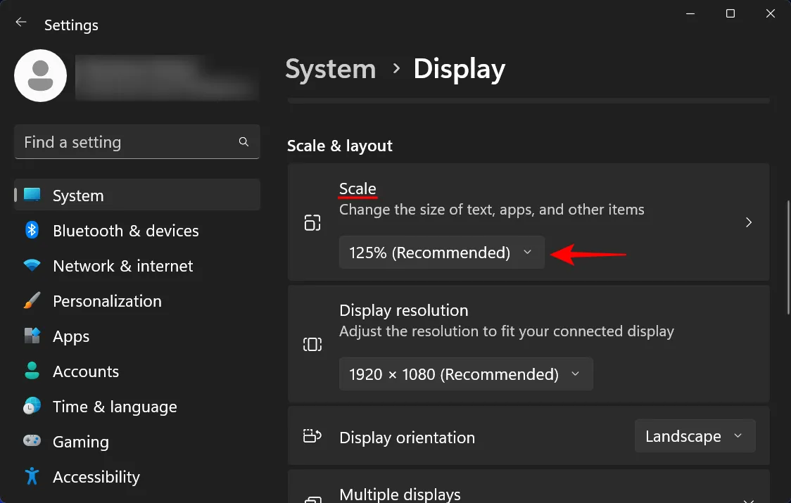 Еще одна вещь, которую вы можете изменить, чтобы значки выглядели меньше, — это уменьшить масштабирование. На той же странице настроек дисплея щелкните раскрывающееся меню рядом с Scale.