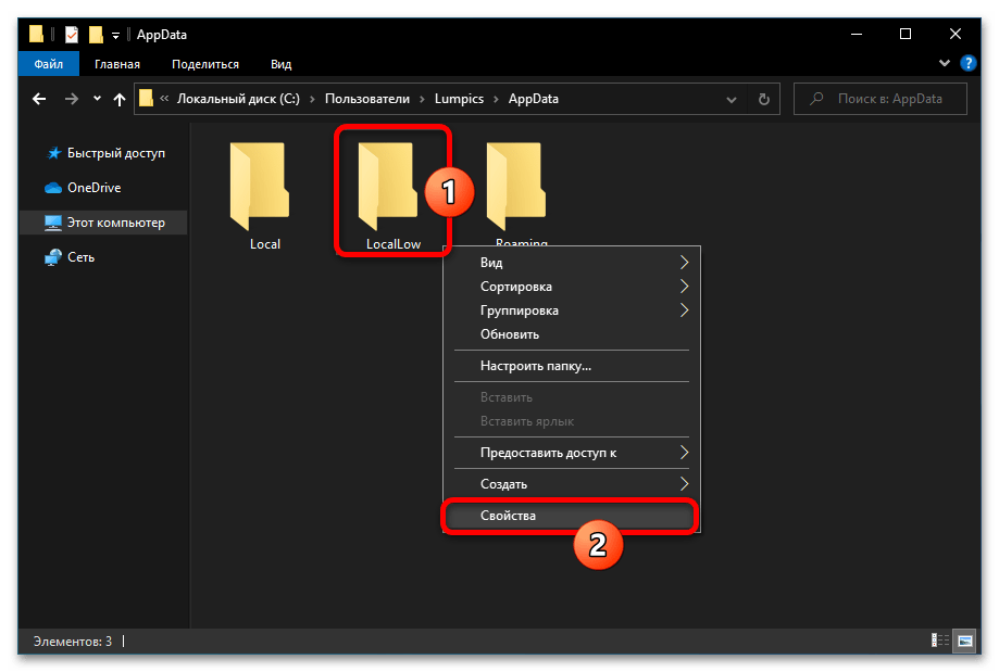 В открывшемся каталоге среди прочих присутствует папка «LocalLow», которая и является для нас целевой (по имеющимся данным, не перезаписывается операционкой ни при каких обстоятельствах, т.е. характеризуется неизменной датой создания).