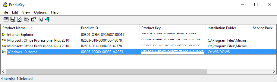 Она позволяет узнать не только ключ системы, но и приложений Microsoft Office, и браузера Internet Explorer (ныне переименованного в Edge).