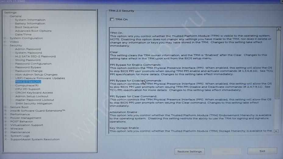 - В меню настроек TPM найдите параметр для включения TPM и включите или включите его.