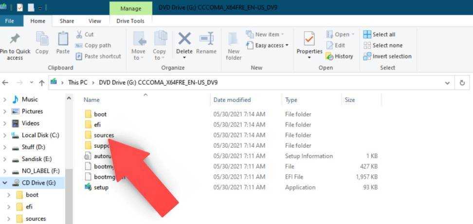 - запускаем «Проводник» и открываем ISO-образ Windows 10;