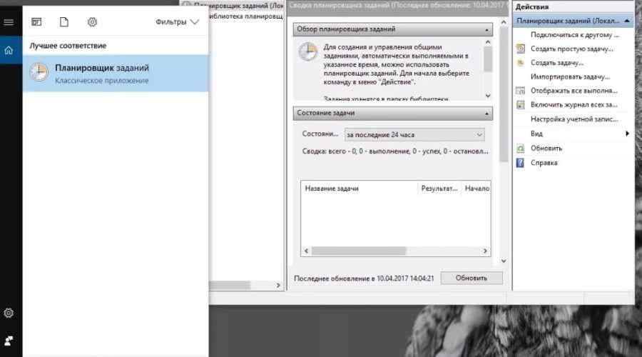 Планировщик задач Windows 10