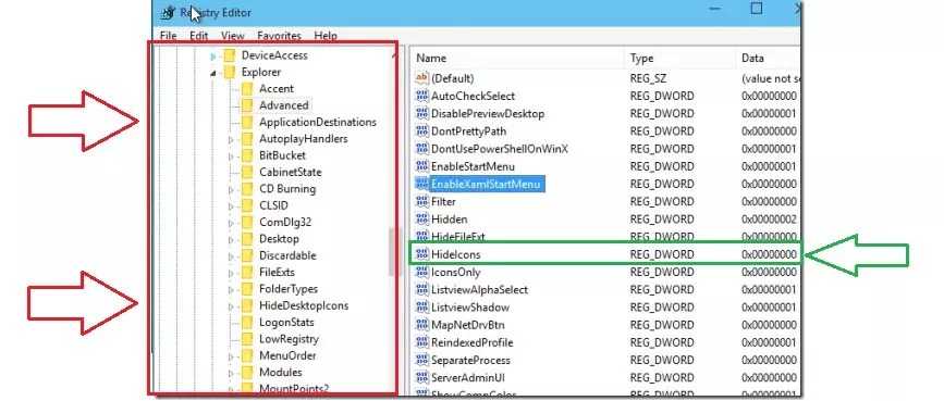 - Откройте раздел реестра HKEY_CURRENT_USER Software Microsoft Windows CurrentVersion Explorer Advanced