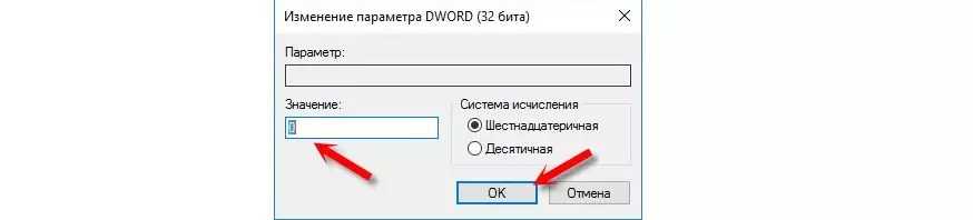 Правый щелчок на нем — пункт «Изменить…» — откроется окошко. В нем нужно присвоить параметру нулевое значение. Нажмите «ОК».