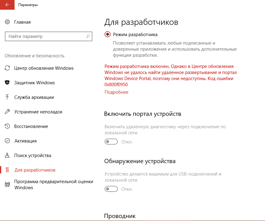 Препятствовать запуску среды могут неправильные настройки. При этом появится соответствующее системное сообщение. Для исправления ошибки потребуется зайти в «Режим разработчика Windows», выставить нужные параметры.