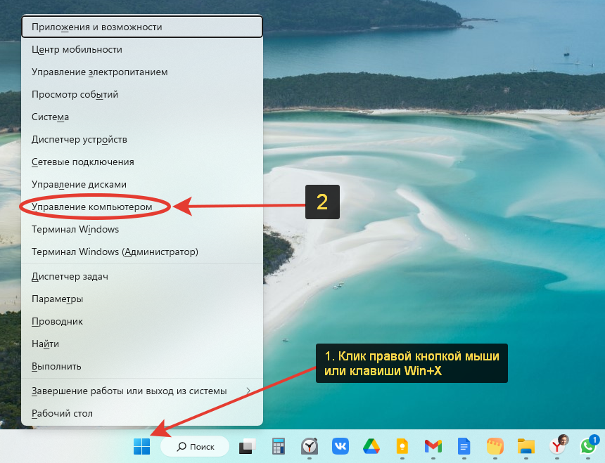 Запуск меню WinX в Windows 11 и вход в утилиту «Управление компьютером»