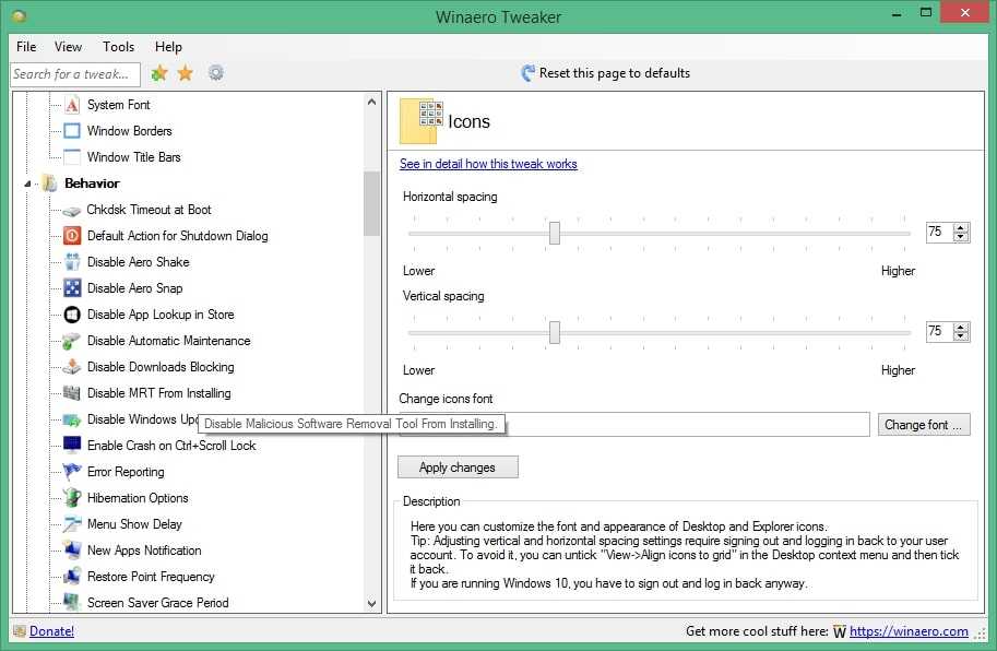 Внешний вид Winaero Tweaker