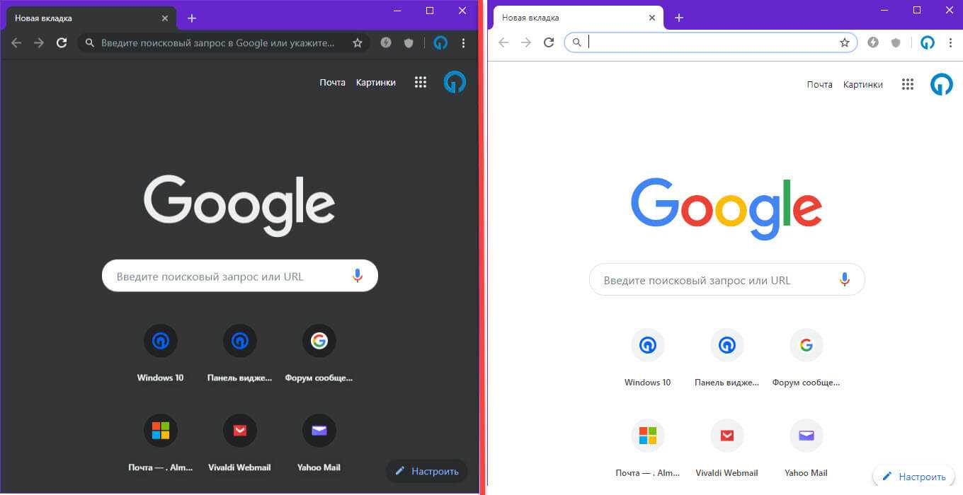 Как включить светлую тему Google Chrome при тёмной теме Windows 10?