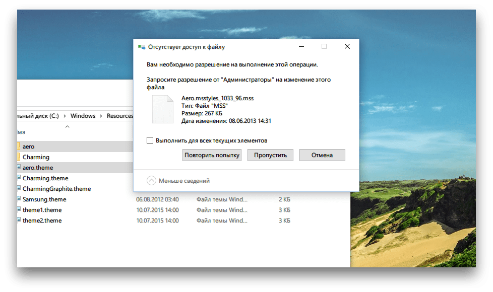 в их первоначальное расположение, то есть в C:\Windows\Resources\Themes. Нажмите на кнопку подтверждения операции во всплывающем окне.