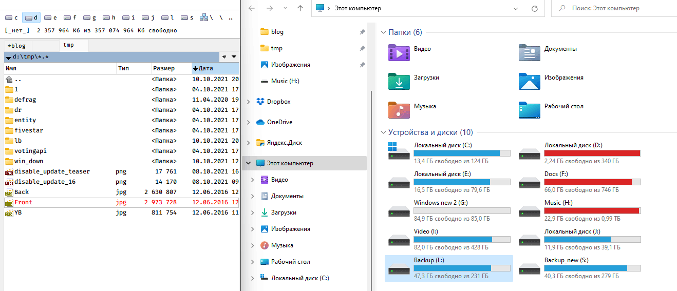 Перетаскивание между двумя каталогами, директориями осуществляется тем же способом, что и в Windows 10. Опишем данный метод в пошаговой форме.