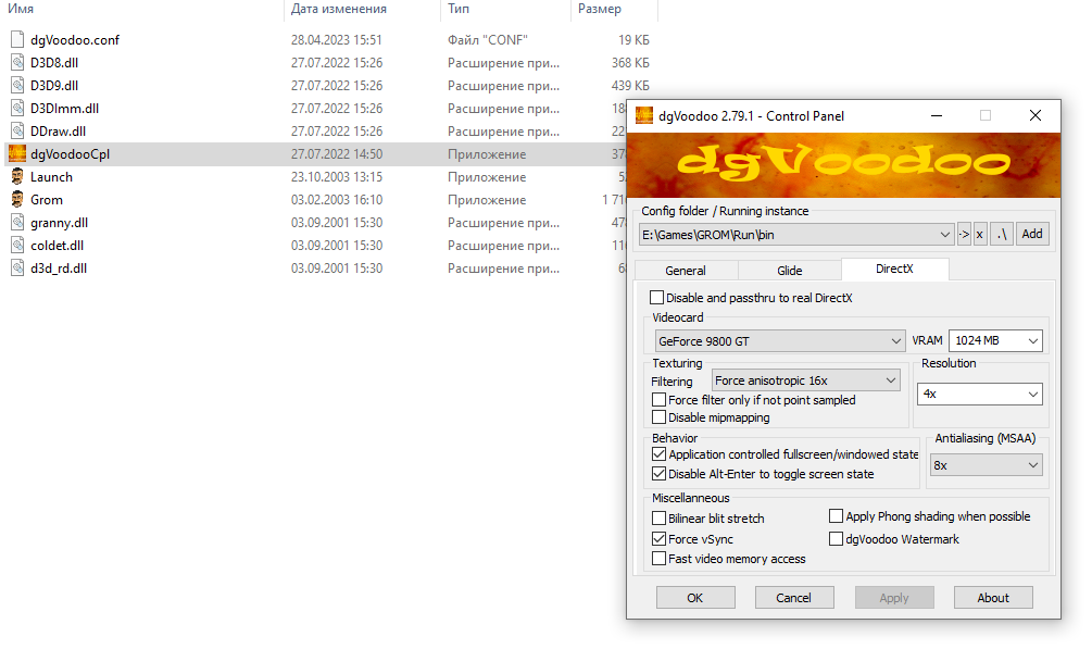 Файлы с dgVoodoo 2 в папке с игрой Grom: Terror in Tibet, вышедшей в 2003 году