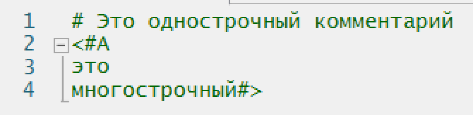PowerShell позволяет вставлять в код комментарии. Они никак не влияют на выполнение скрипта и нужны людям, которые будут читать вашу программу. Однострочный комментарий начинается с символа #, а многострочный обрамляется с двух сторон символами <# и #>.