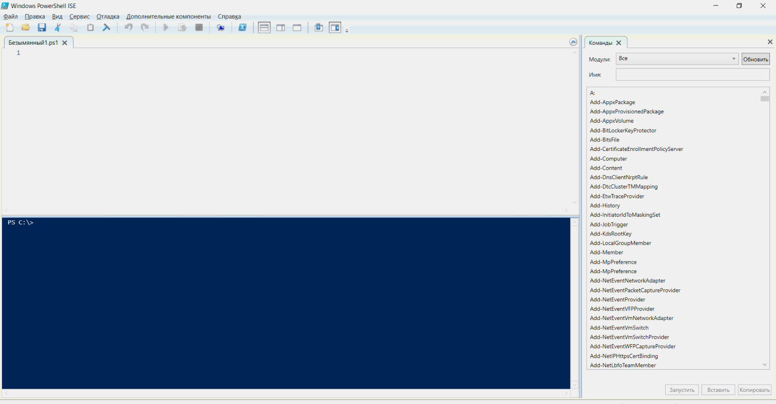 Терминал PowerShell удобен для выполнения небольших коротких однострочных задач. Чтобы создавать и сохранять сложные скрипты, есть интегрированная среда сценариев.