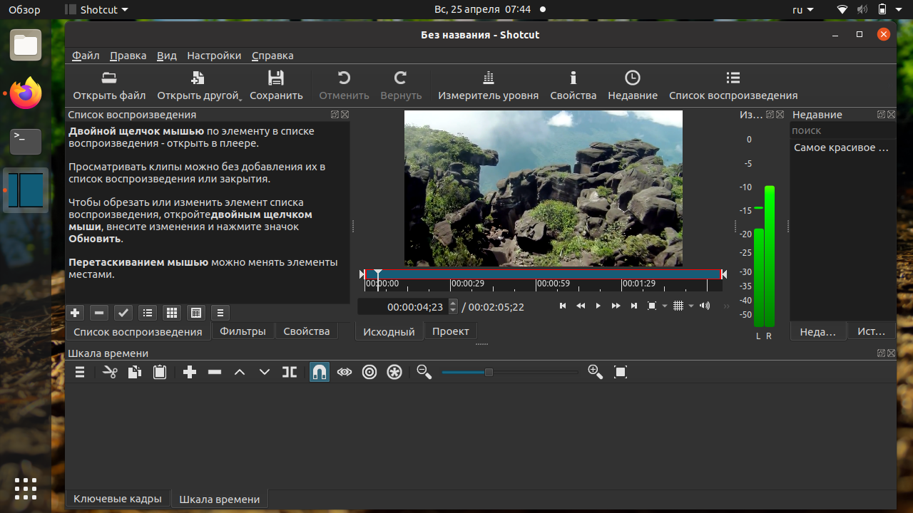 Для нелинейного редактирования используется временная шкала и несколько дорожек на ней. Если вам нужен простой редактор видео, устанавливайте Shotcut. Для этого введите в терминале следующую команду: